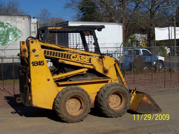 - Yellow colored Skid Steer Model #1845, all-wheel tractor with bucket attached to the front. (See picture attachment of stock photo)