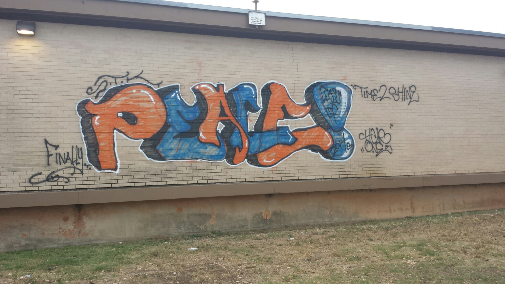 A vandal with a strangely positive message tagged Central High School with a colorful blue and orange mural bearing the word "peace" sometime Thursday night or early Friday morning.