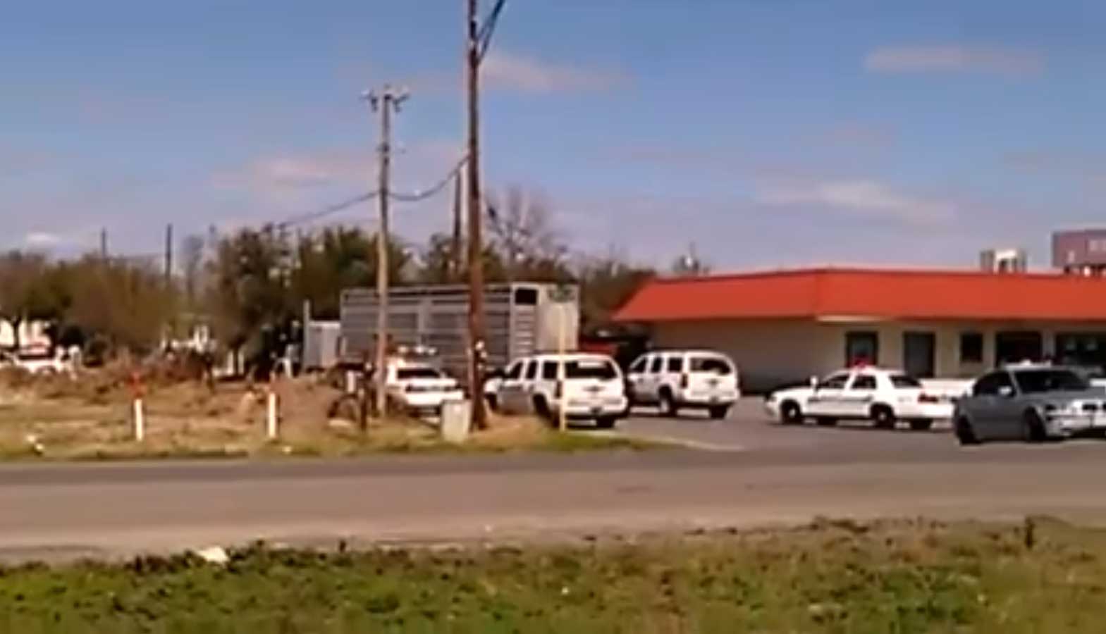 Del Rio Mayor Robert Garza confirmed the shooting in a Facebook post. He said the suspect threatened people inside the adjacent convenience store with a machete and, “later attempted to run over some officers,” with his truck, as seen in the video. No law enforcement officer was injured, Garza wrote.