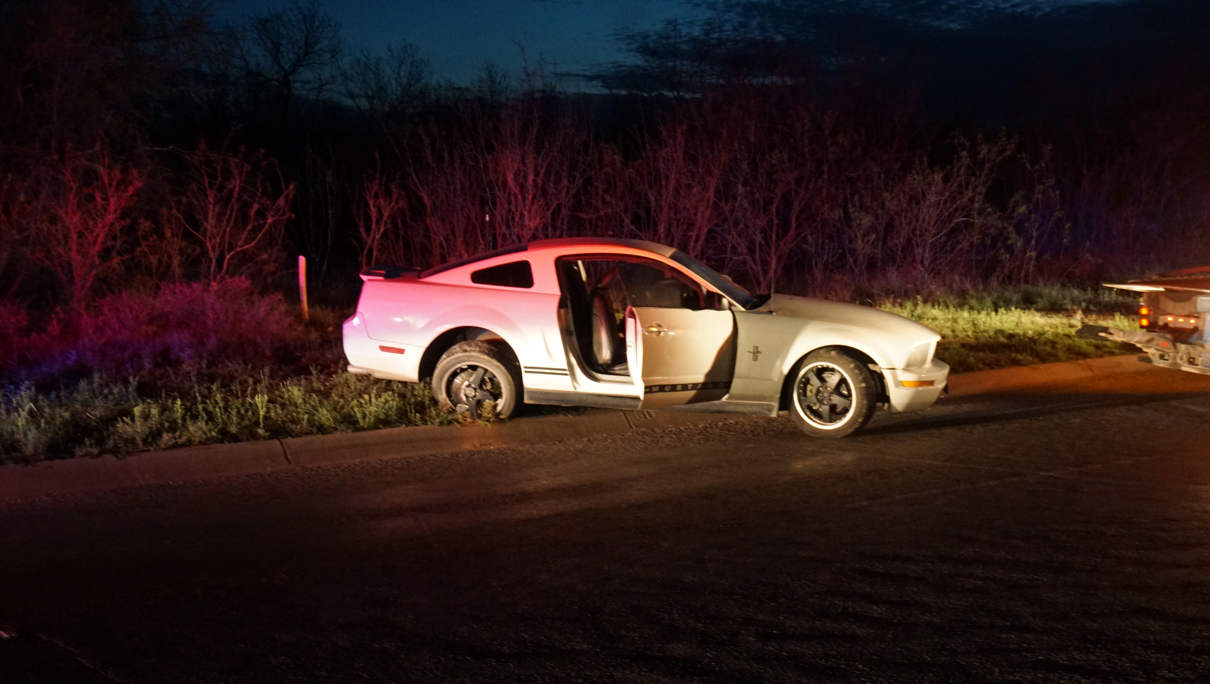 The Mustang reached Loop 306 and headed eastbound towards College Hills where the Mustang exited. The suspect turned southwest on College Hills, accelerating. By the intersection of Valleyview, the speed was too much for him, and the Mustang spun out-of-control with police right behind.