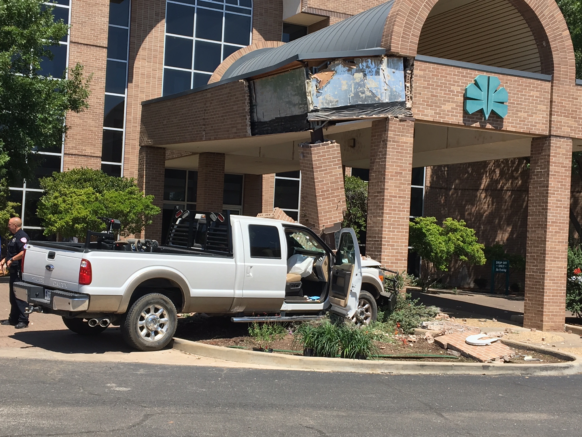 A 56-year-old San Angelo man underwent emergency surgery after he was struck by a 2014 Ford F-350 Super Duty Pickup truck in the Shannon Clinic Magdalen parking lot located at 102 North Magdalen Street just before 2:15 p.m. The victim, an employee of Scherz Landscaping Company, was working at the location when the truck entered the parking lot at a high rate of speed and struck the man before it crashed into a brick-covered pillar that supports the clinic’s covered entrance. The victim suffered incapacitating injuries and is said to be in critical yet stable condition. The driver was not injured.