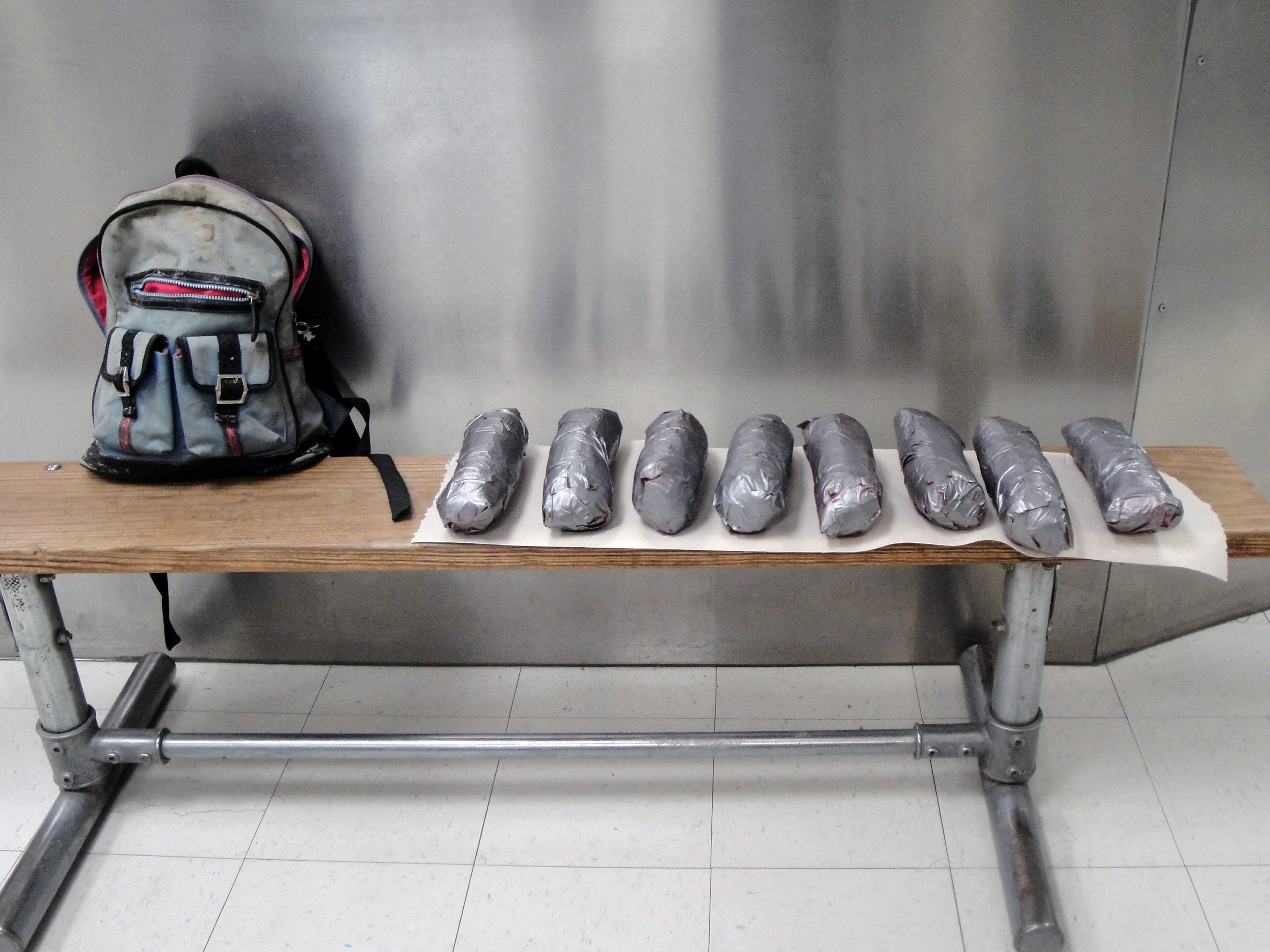 On the afternoon of Aug. 8, Del Rio Border Patrol agents were alerted to possible illegal activity in the remote area surrounding the Highway 277 checkpoint. Agents responded and with the assistance of a service canine located a recently discarded backpack, hidden among the brush. Agents inspected the backpack and discovered eight individually wrapped packages containing 10.4 pounds of methamphetamine.