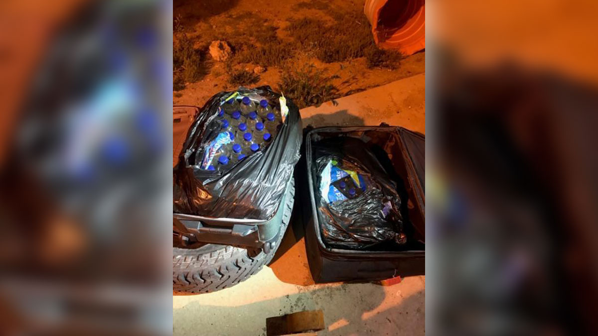 On Friday, May 3, a Sierra Blanca Border Patrol Agent and canine partner discovered two suitcases located in the lower luggage compartment of a passenger bus at the Sierra Blanca checkpoint. Inside the suitcases agents discovered 90 plastic bottles containing liquid methamphetamine, for an approximate weight of 118 pounds. The successful seizure is attributed to a highly trained canine alerting to the narcotics and the canine handler’s years of experience.