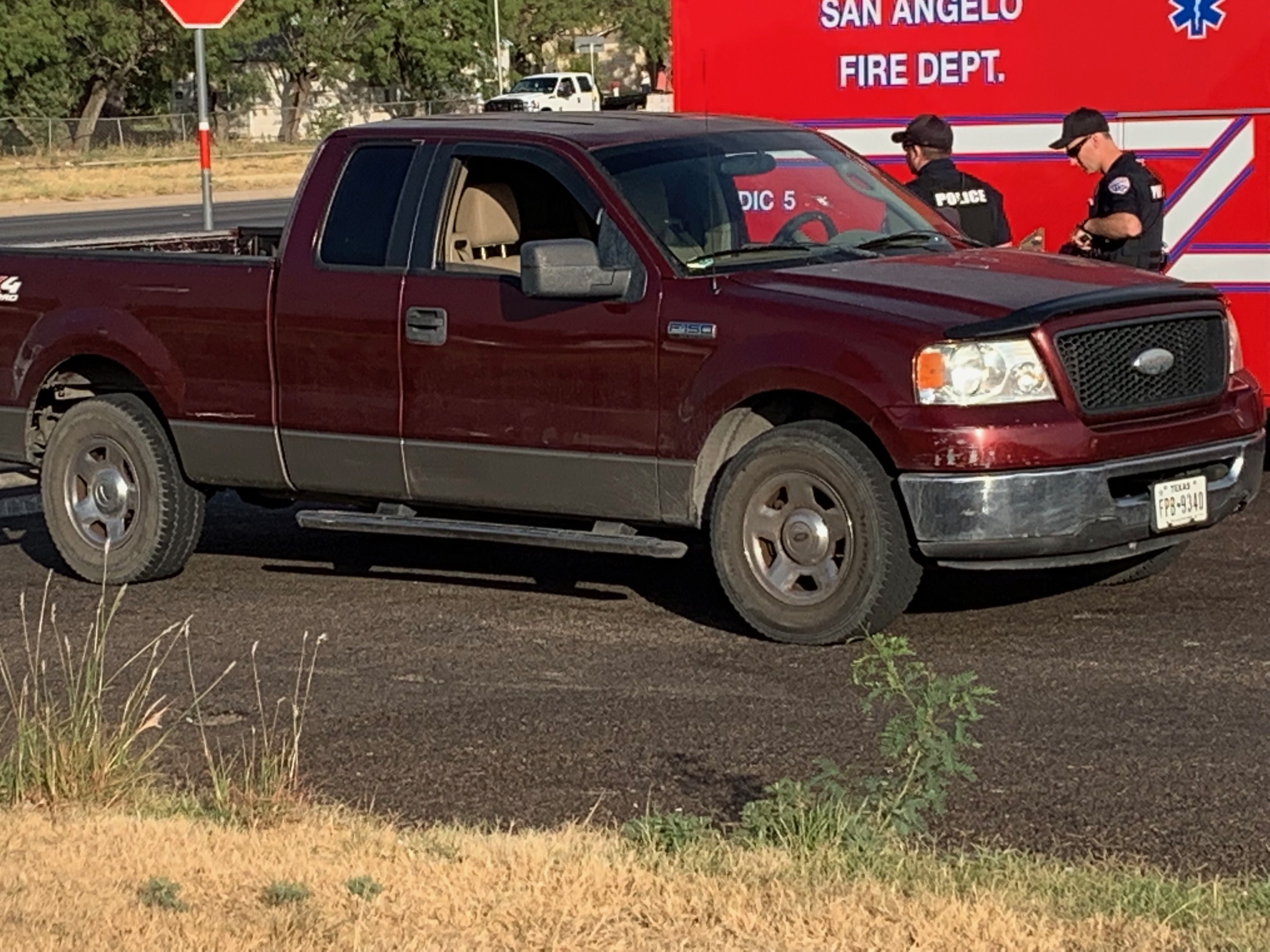 Scanner reports indicate a maroon pickup was involved.