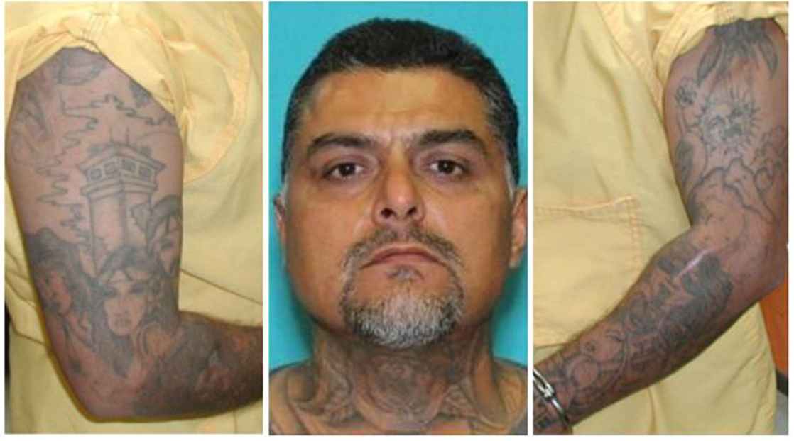 Gallegos is 5 feet 6 inches tall and weighs approximately 210 pounds. He has an extensive collection of tattoos on his arms and neck, including the name “Rosa” under the rose on his neck and the letters “EME” on top of his left hand. He also has tattoos covering his entire scalp.