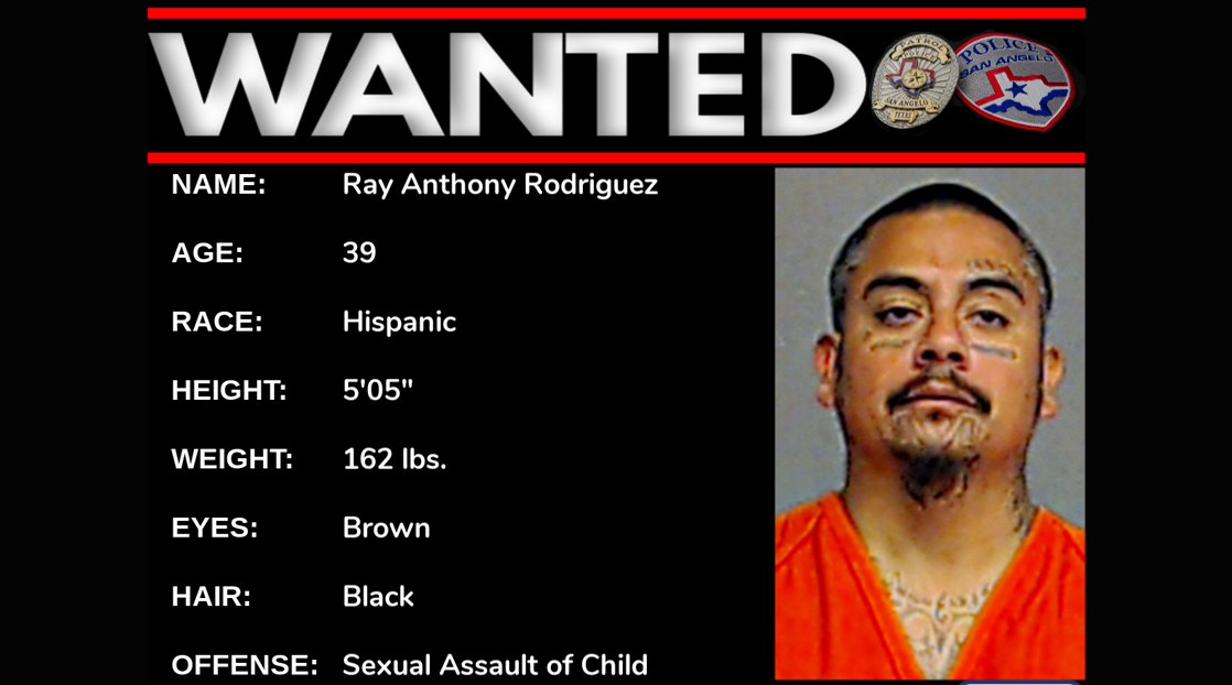 SAN ANGELO, TX — Investigators with the San Angelo Police Department’s Crimes Against Children Unit have obtained a warrant of arrest for 39-year-old Ray Anthony Rodriguez for the charge of Sexual Assault of a Child according to a press release.