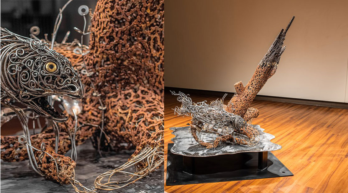 According to a press release, the steel sculpture, titled “Life Aquatic,” is a detailed depiction of a fish swimming among aquatic plants and a partially submerged log. The fish was removed from the sculpture’s base with a pair of wire cutters or bolt cutters, sometime early last week or before. The artist describes the fish, which took over four months to create, as the central element or the “spirit” of the sculpture. As a one-of-a-kind piece, it cannot be replaced. Blossom, along with the museum, hopes for the safe return of the stolen piece.