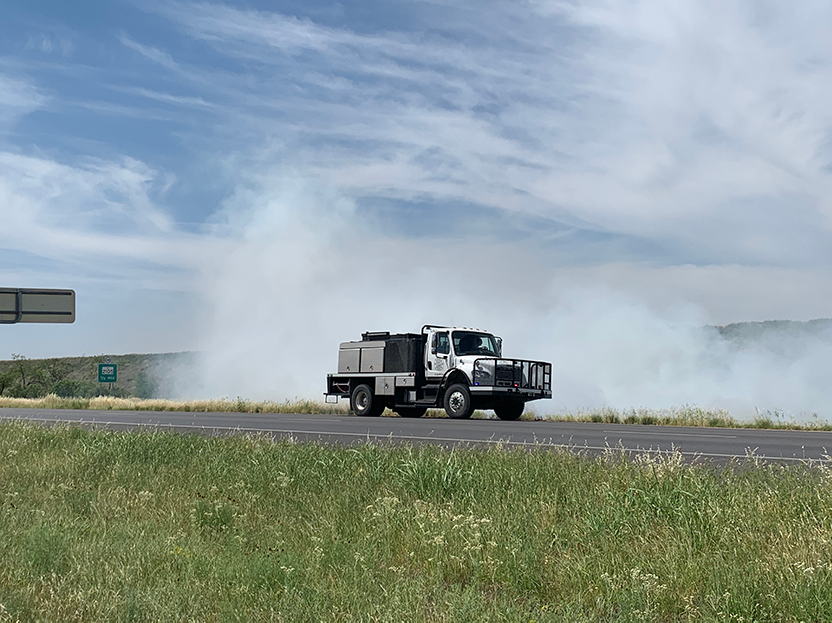 Radio reports indicate a truck pulling a trailer with a dragging chain could be creating sparks that ignited the fires.
