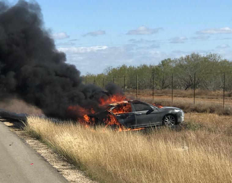 At approximately 11:25 a.m., agents assigned to the Carrizo Springs Station were notified that a vehicle picked up three individuals from the brush on Highway 277, near Farm to Market Road 393. Agents responded and notified the Dimmit County Sheriff’s Office. A vehicle matching the description was located on Highway 85 near the intersection of Farm to Market Road 1407. DCSO deputies attempted to conduct a traffic stop, however the driver of the vehicle failed to yield. A controlled tire deflation device was successfully deployed by Texas Department of Public Safety troopers. The vehicle came to a stop on the side of the road, and the occupants fled on foot. The bailout caused a vehicle and grass fire. A 21-year-old Dallas man, the registered owner of the vehicle, was arrested for alien smuggling. Three individuals illegally present in the United States were also arrested.