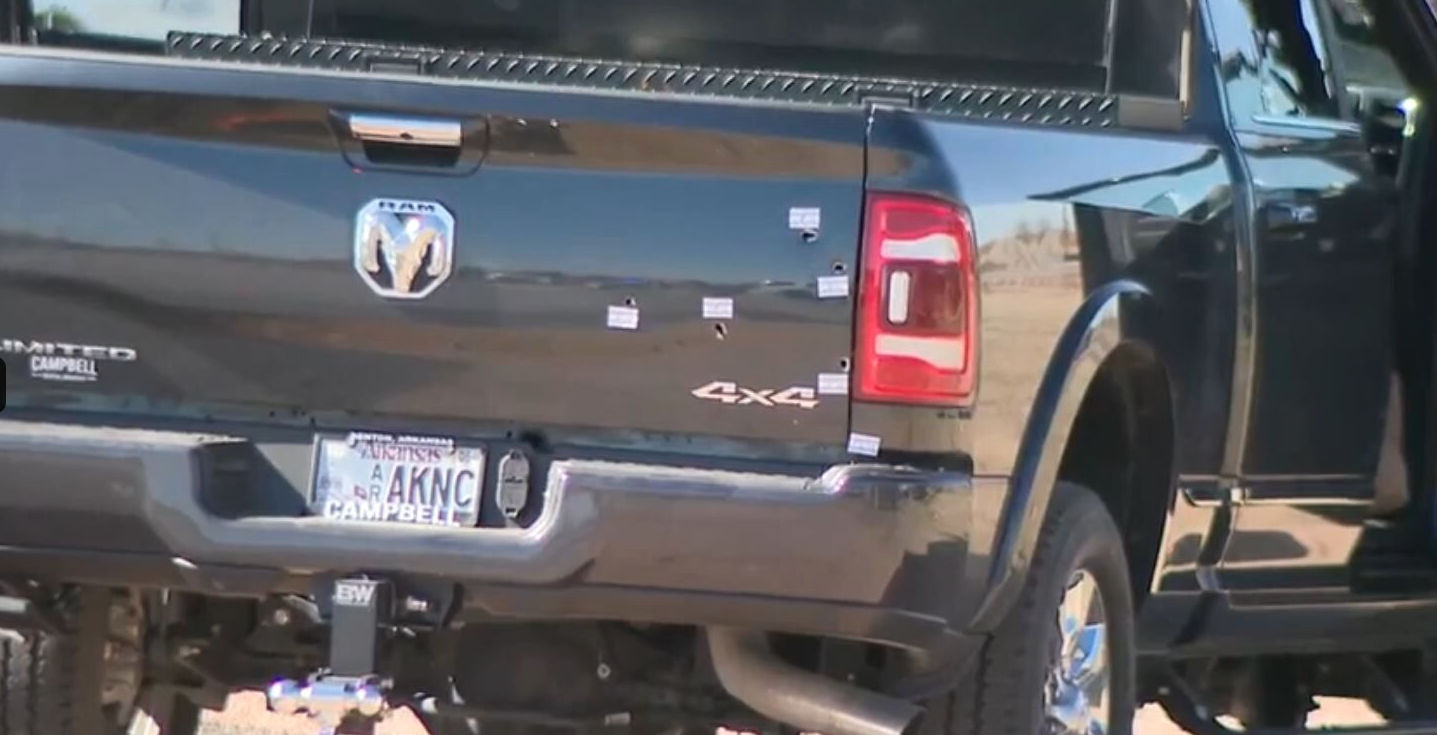 Rangers were back on scene today to search the Dodge pickup. During which six bullet holes were marked on the tailgate of the truck.