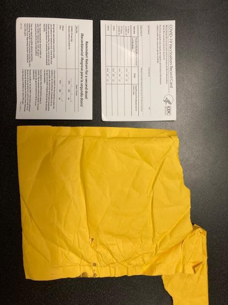 The cards have blanks for the recipient’s name and birthdate, the vaccine maker, lot number, and date and place the shot was given, as well as the Center for Disease Control (CDC) logo in the upper right corner. However, there were typos, unfinished words, and some of the Spanish verbiage on the back was misspelled. How else did they know it was counterfeit? It was imported by a non-CDC or medical entity, and this was not the first time they had seen this shipper.