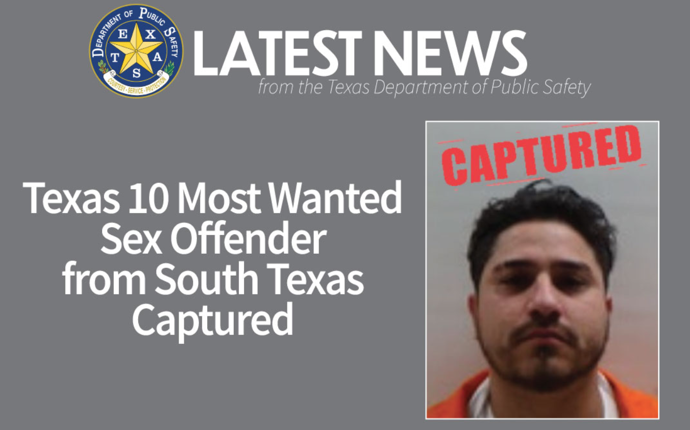 AUSTIN – Texas 10 Most Wanted Sex Offender John Anthony Rangel is back in custody following his arrest on Oct. 22. He was arrested in Harlingen by Texas Department of Public Safety (DPS) Special Agents, who coordinated with Texas Highway Patrol to conduct a traffic stop after Rangel was seen leaving a house. Rangel is from the Harlingen area. His arrest was not the result of a tip, so no reward will be paid.