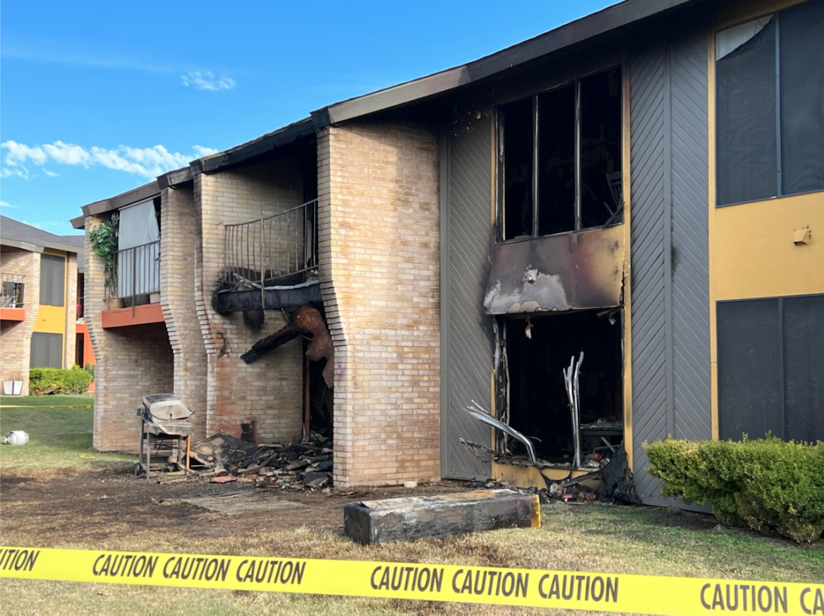 SAN ANGELO, TX – An apartment building at the Plaza Square Apartments burned down on Thursday morning.