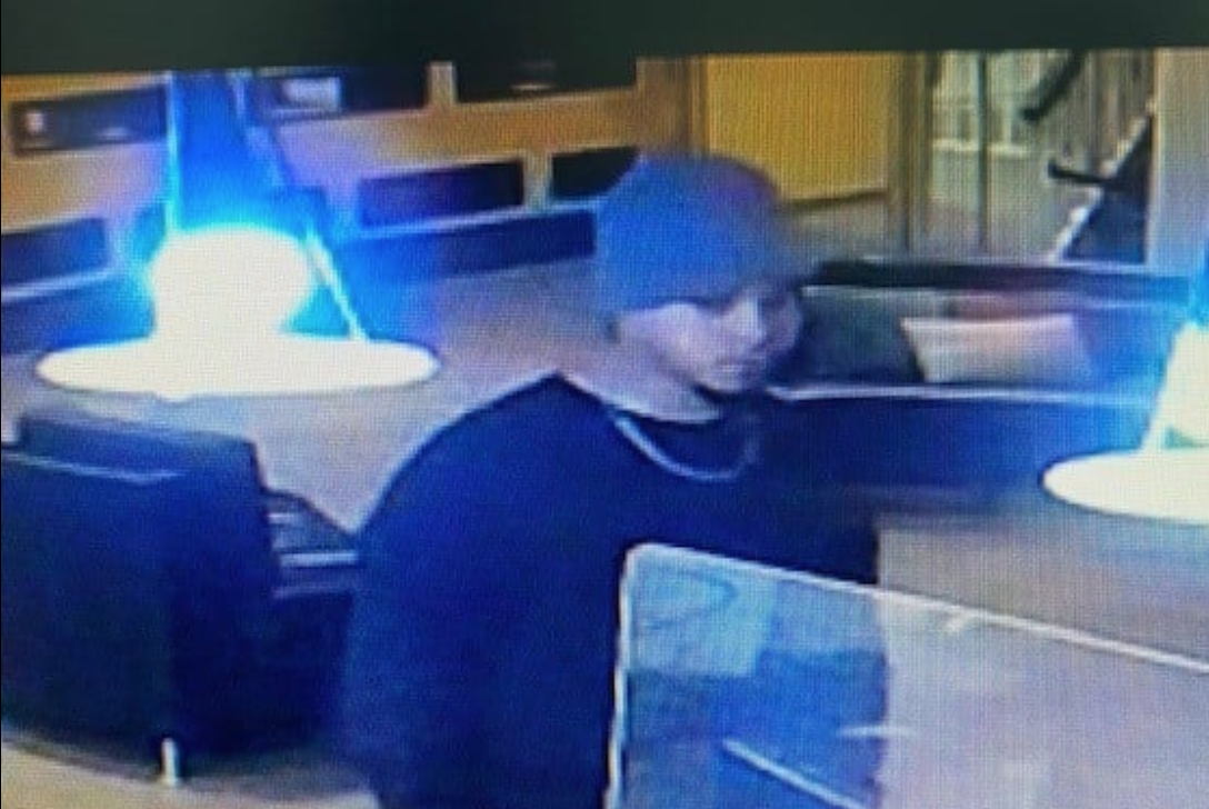 The suspect is a black male last seen wearing a black sweatshirt, black sweatpants, gray beanie and gold necklace. Pictures of the suspect taken from the establishments security footage are attached.