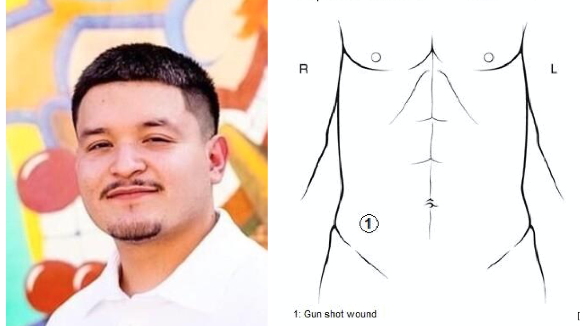 After PD secured the scene, paramedics began a rapid trauma assessment. They noted that there was a bystander in the room that could only tell the paramedics the victim's name. The paramedics found that the bullet had entered through Galvan's right lower abdomen and exited through his upper back.
