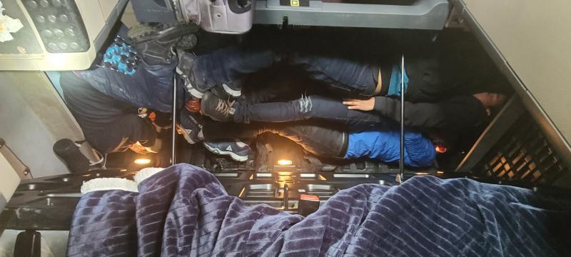 On March 28, agents working at the FLF referred a 2021 Chevrolet Suburban to the secondary inspection area for further questioning after the driver, a Cuban citizen, was displaying nervous behavior. A search of the vehicle revealed four illegals concealed in the rear passenger area under some blankets. The aliens were determined to be from Central America unlawfully present in the U.S. All subjects were placed under arrest and escorted into the checkpoint.