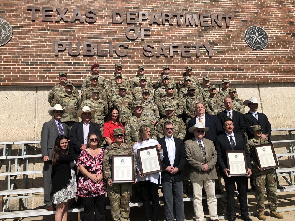 Lieutenant Locklar and others were recognized with a Unit Citation for their work with the Border Security Operations Center (BSOC) and the six Joint Operations Intelligence Centers (JOICs) from September 1, 2018 through August 31, 2021. These units are led by the Texas Ranger Division and staffed in cooperation with the Texas Military Department, with support from National Guard units. The BCOS and JOICs have excelled due to exceptional partnerships with the US Border Patrol and numerous state and local agencies within DPS' South and West Texas Regions. Through sustained effort and commitment, these personnel have developed and maintained more than 5,000 Drawbridge cameras from El Paso to Brownsville. These surveillance cameras provide real-time information for DPS officers, Border Patrol agents and other law enforcements agencies statewide. The BSOC and JOICs provide daily logistical and technical support, along with training to the officers and agents who use Drawbridge. To ensure Operation Drawbridge's success, individuals repair and deploy cameras and monitor the 150,000 images transmitted daily. During these three years, there were 311,365 migrants who were apprehended; 37,882 turn backs; 84,739 pounds or marijuana seized; 667 pounds or cocaine seized; 167 pounds of methamphetamine seized; and 21 firearms seized.