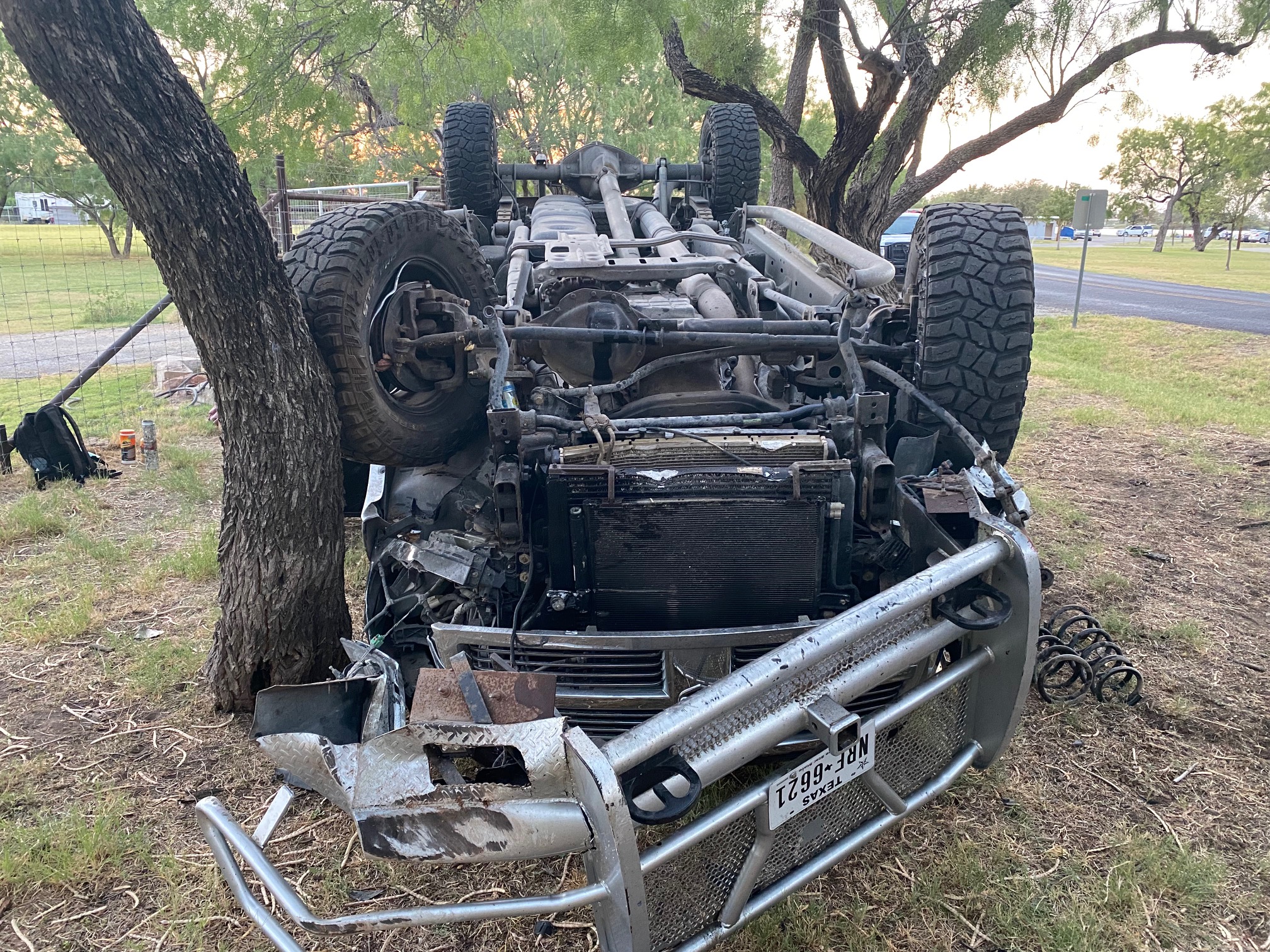 SAN ANGELO – A wild rollover crash on a winding Lake Nasworthy road ended with a pickup mangled upside down and the driver arrested for Driving While Intoxicated Friday evening.