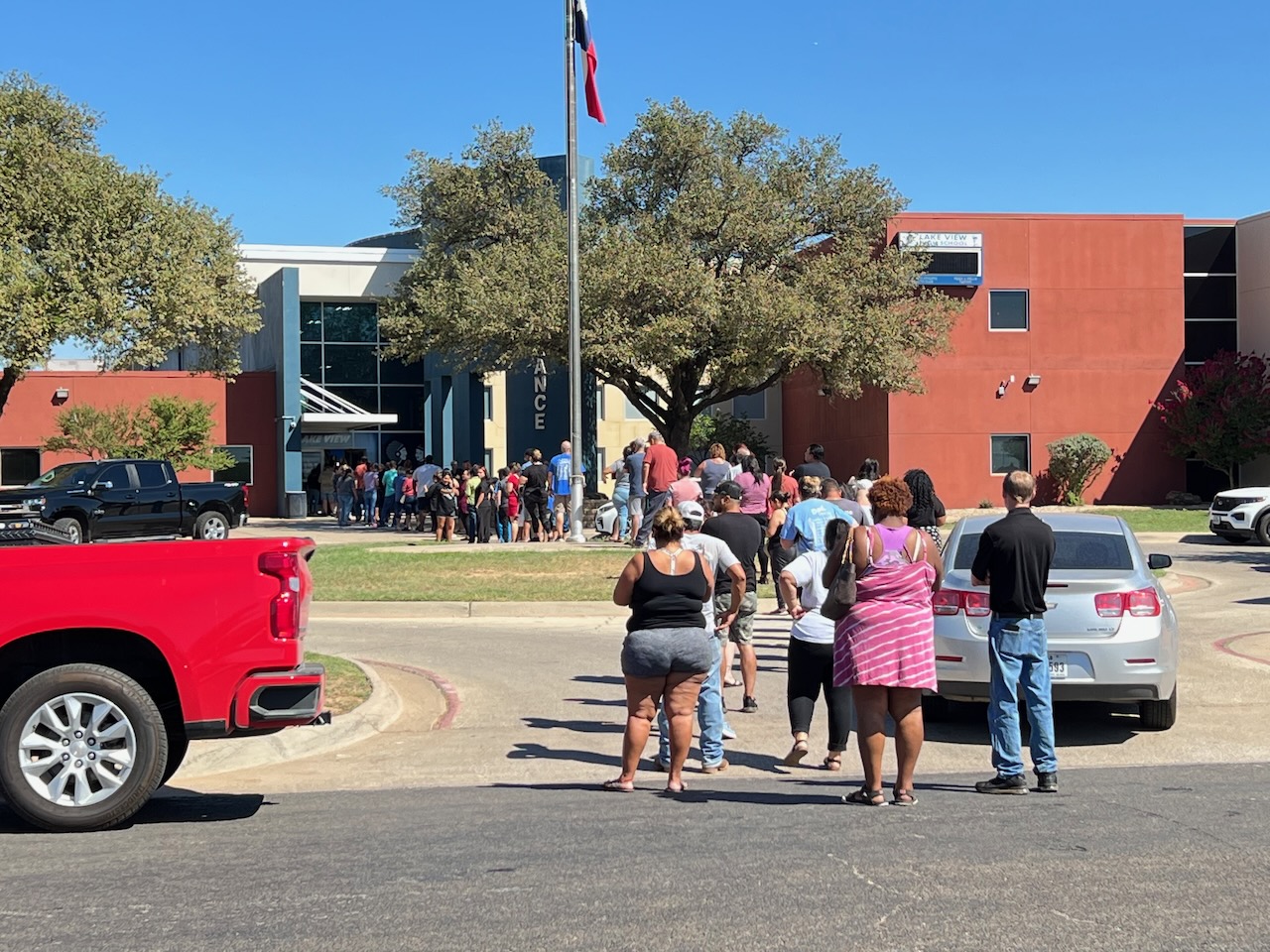 Here is a video of the scene Thursday afternoon as parents frantically await the opportunity to pick up their child from high school. One parent passed out due to the heat and authorities moved the line to shaded areas. Lake View High administrators had begun releasing students in groups to expedite the mass exodus from the building.