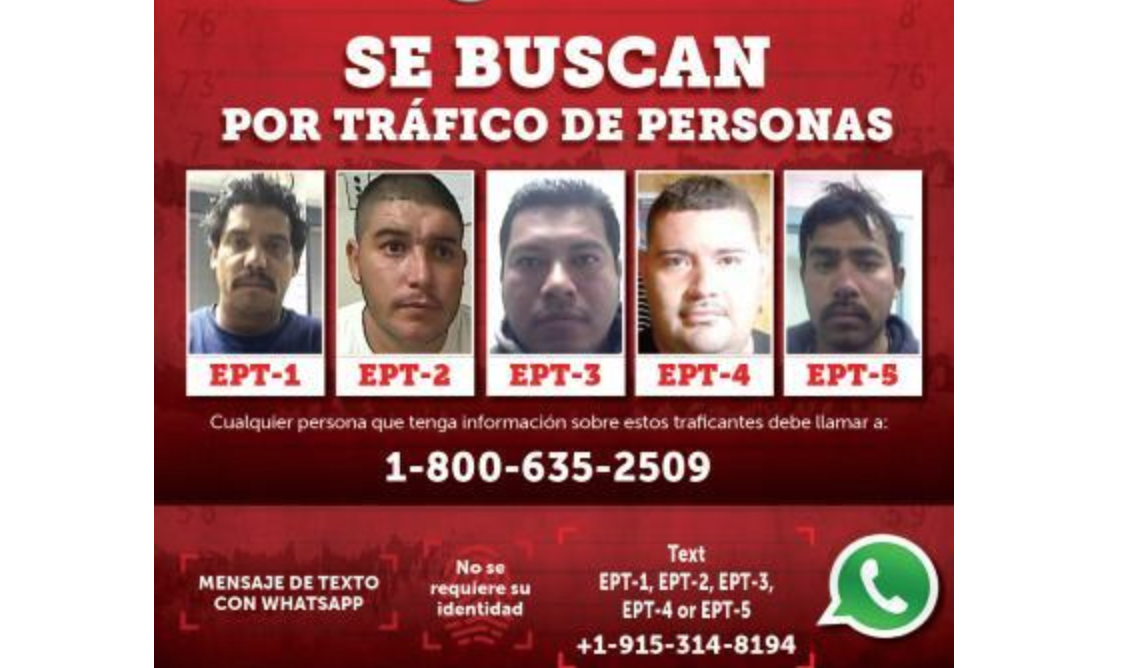 “Transnational Criminal Organizations exploit migrants and treat them as a commodity as smugglers continue to place their lives in danger,” said Acting Chief Patrol Agent Peter Jaquez of the El Paso Sector. “Through this initiative, community members on both sides of the border will have an opportunity to provide us with information to capture these dangerous smuggling criminals who exploit vulnerable migrants for profit.”