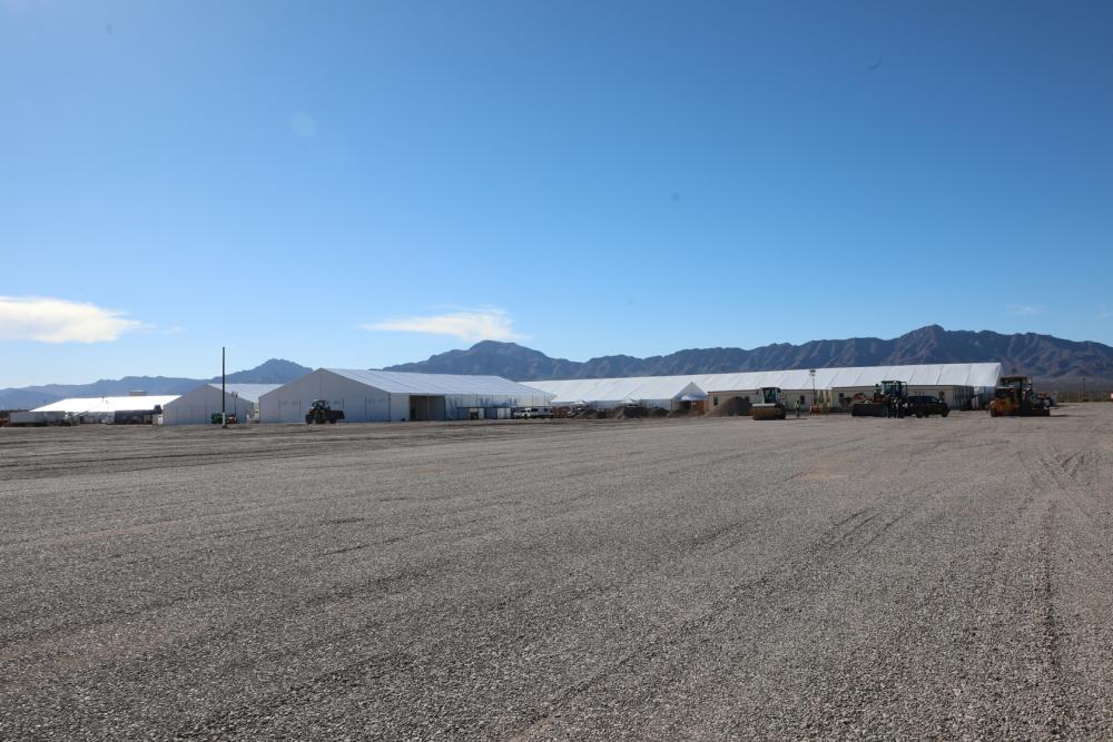 The facility is weatherproof, climate-controlled, and is expected to provide ample areas for eating, sleeping, and personal hygiene. The new facility’s design is similar to that of recently constructed soft-sided facilities. The 153,300-square-foot facility sits on 28 acres. The temporary facility will provide additional processing capacity for Border Patrol’s El Paso Sector.