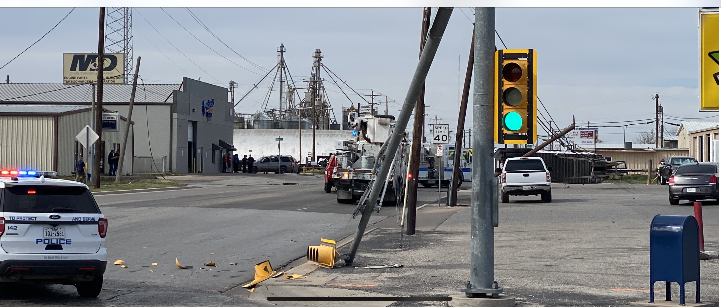 As we reported earlier, San Angelo Police were investigating their block long crash scene from the Houston Harte access road to Beacon St. where the alleged thief apparently accidentally raised the bed which then struck the power lines.