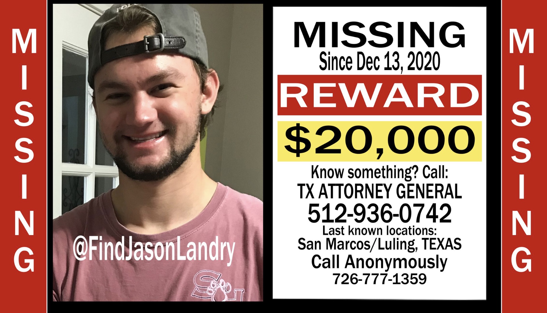 AUSTIN, Texas — Landry was last seen on December 13, 2020, and his abandoned vehicle was discovered the subsequent day on a rural road just outside of Luling, Texas.