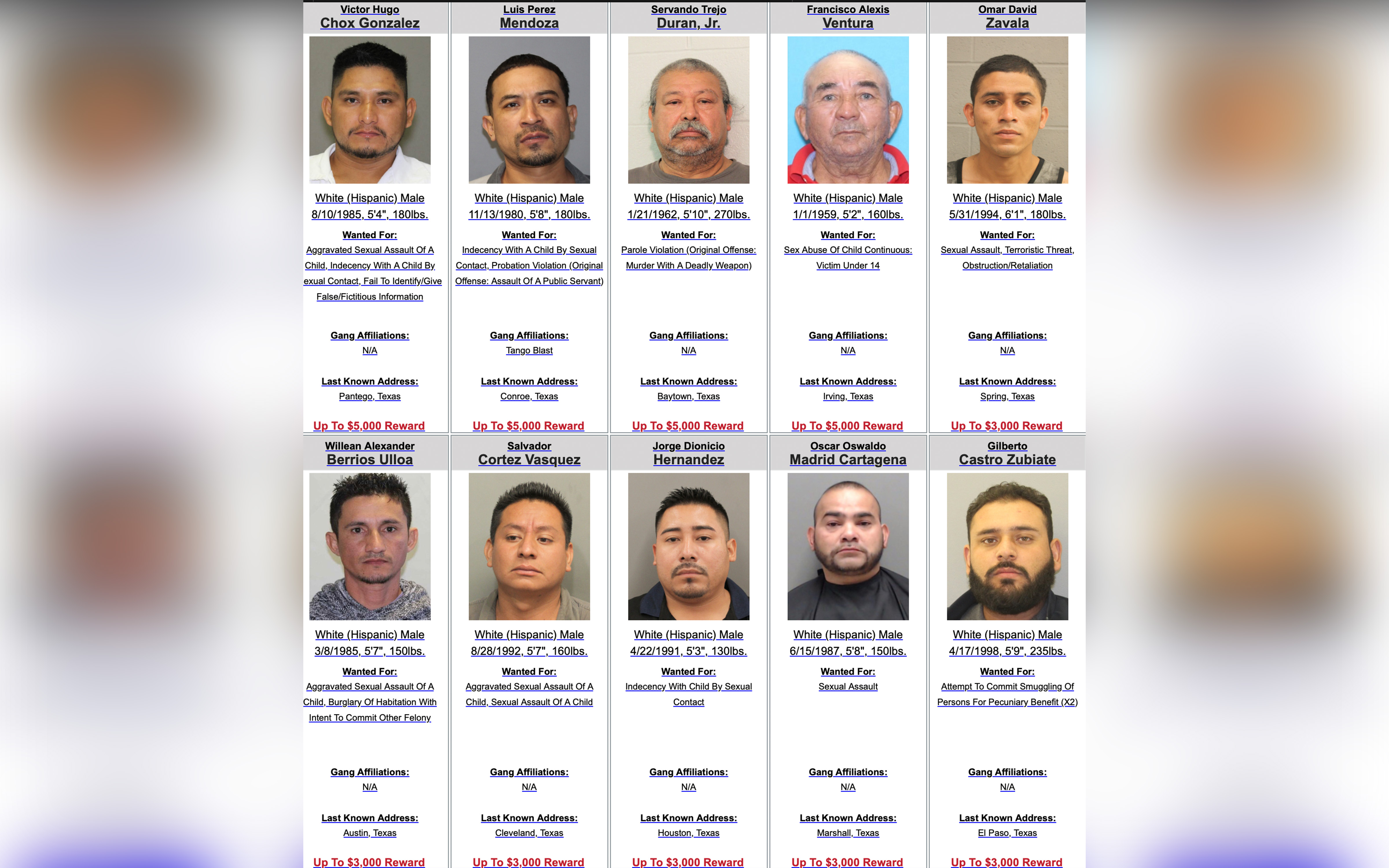 SAN ANGELO, TX - Today, Governor Greg Abbott launched the Texas’ 10 Most Wanted Criminal Illegal Immigrants List.