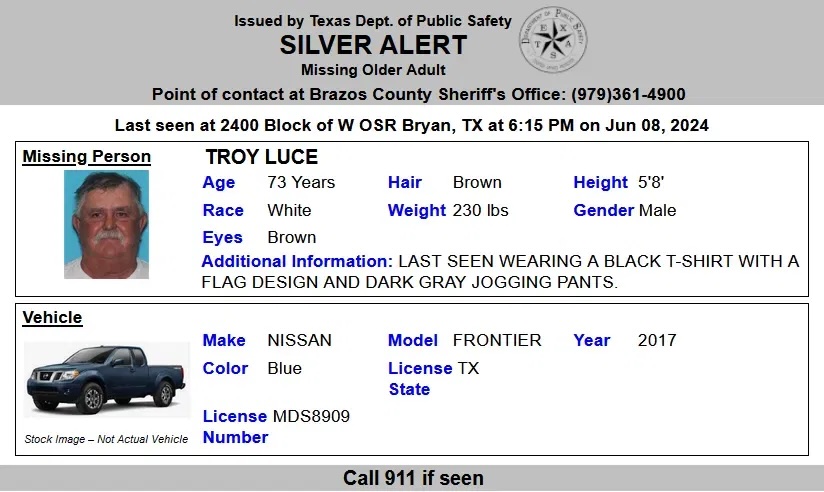 MIDLAND, TX — A 73-year-old man who went missing Saturday in Bryan, Texas, was found dead in Midland County, authorities reported.