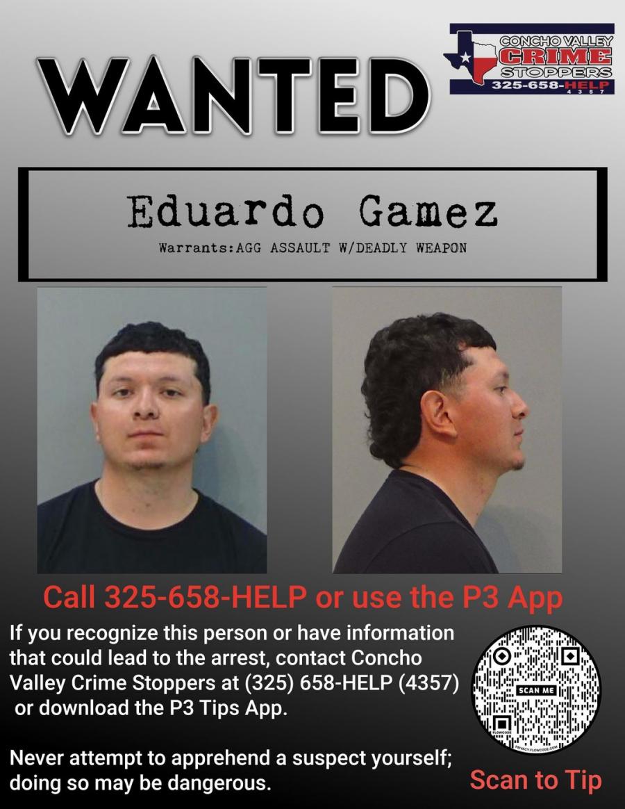 SAN ANGELO, TX — The Concho Valley Crime Stoppers have issued a wanted notice for Eduardo Gamez, who is currently sought on warrants for aggravated assault with a deadly weapon.