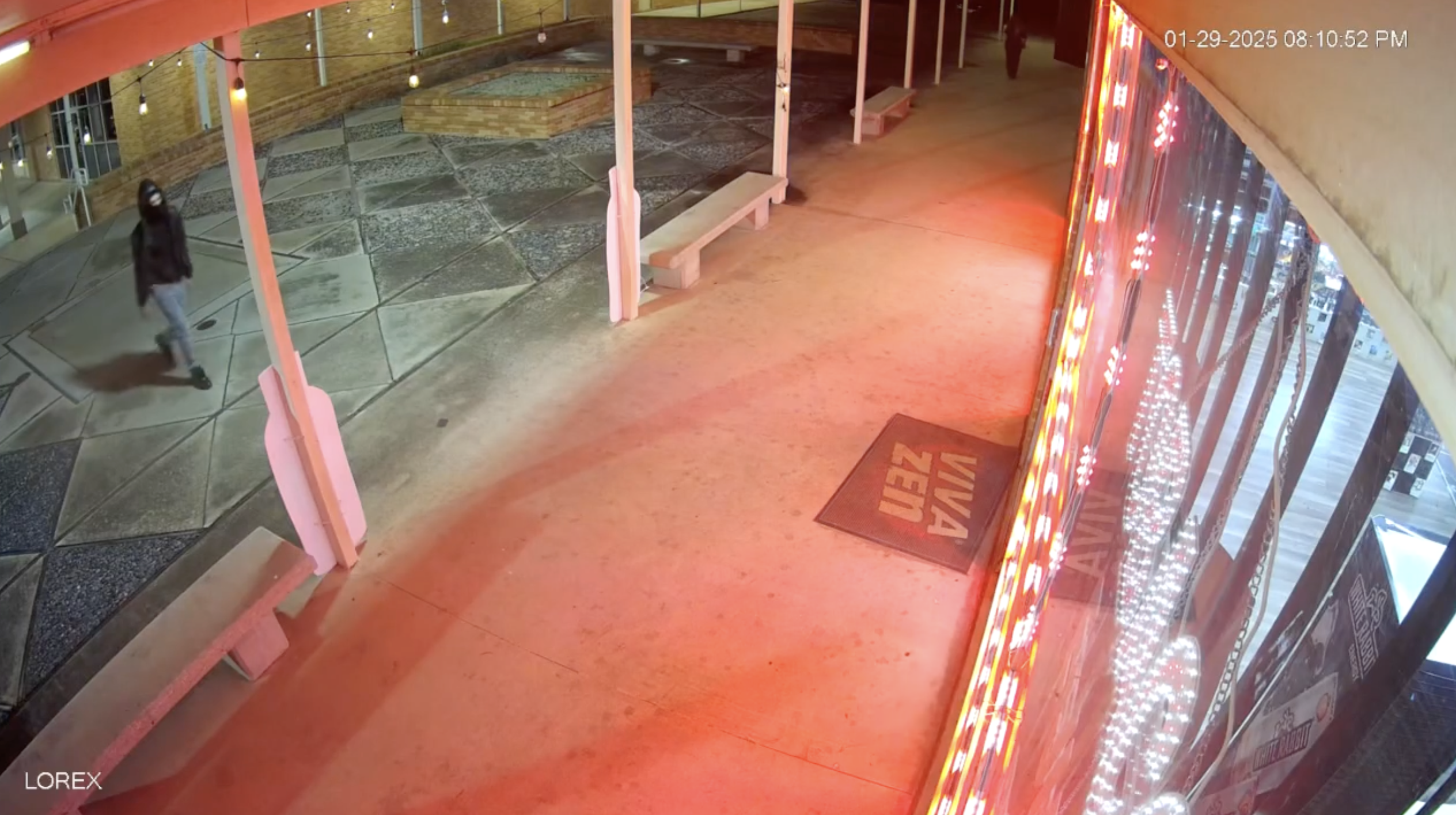 The Big Spring Police Department reported that on Jan. 29, 2025, at around 8:30 p.m., officers responded to Smoke Scene, located at 501 S. Birdwell Lane, after a suspect entered the store armed with a firearm and stole more than $100 in merchandise. Surveillance footage captured the suspect, who was dressed in dark clothing and wearing a mask, walking near the storefront.