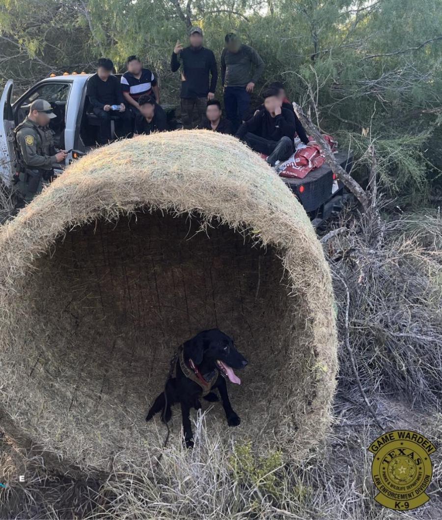 After successfully locating and aiding in the apprehension of their suspect, the game warden received a call from the agent at the scene and were surprised to learn the haybale in the bed of the truck had just flipped over and requested assistance. Officers discovered 10 undocumented individuals hiding inside the fake hay bale.