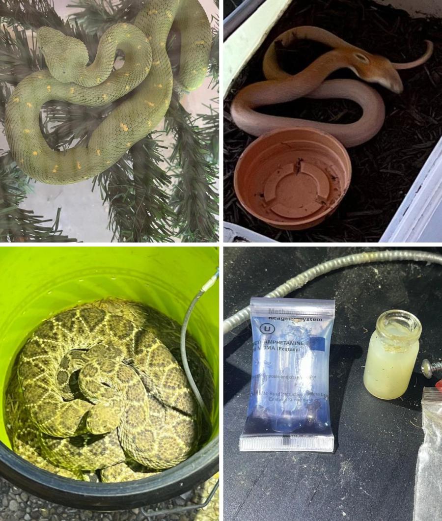 Due to the presence of the openly visible narcotics, wardens obtained a search warrant, which led to the discovery of additional narcotics, drug paraphernalia and more unlawfully possessed snakes. Wardens seized the reptiles and transferred them to a licensed permit holder who is equipped to care for them.
