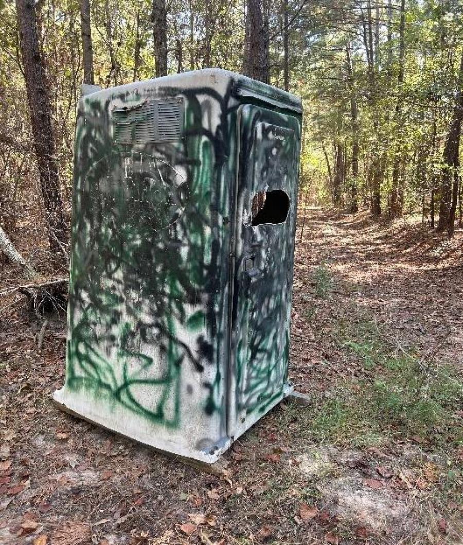 On Nov. 2, Henderson County Game Wardens filed charges against a man for hunting without landowner consent. The wardens had been investigating the suspect since last deer season, when they found an unusual hunting blind made out of a converted port-a-potty. Unable to catch the suspect last year, wardens set up a game camera along the property line in hopes the hunter would return to hunt the same unusual blind.