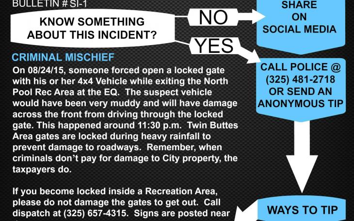 San Angelo Police Department Seeks Information on Criminal Mischief Case