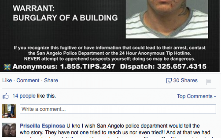 Wanted Suspect Comments on Accomplice's Wanted Poster on PD's Facebook