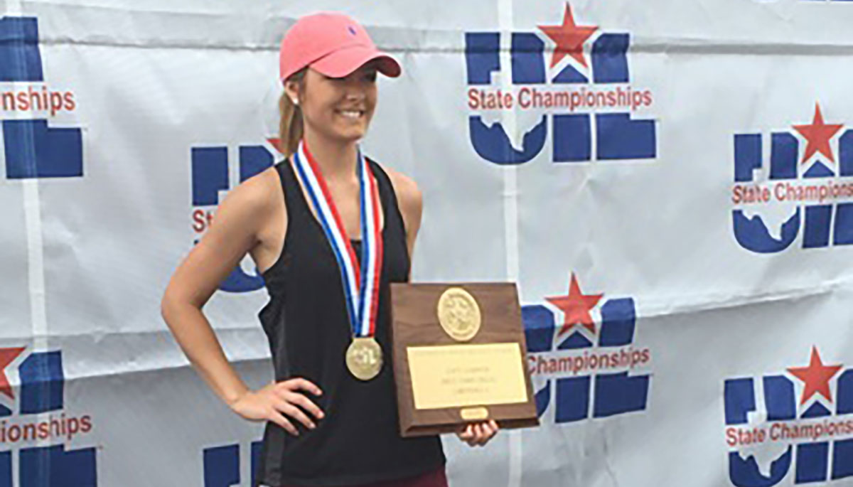After Shelby Grelle won her first match 6-0 at the Texas State 1A Girls Singles State Championship game in College Station yesterday, parents and friends emailed her picture to us. One more win later, she became the 2015 statewide 1A tennis champion. Grelle is a student at Paint Rock High School.