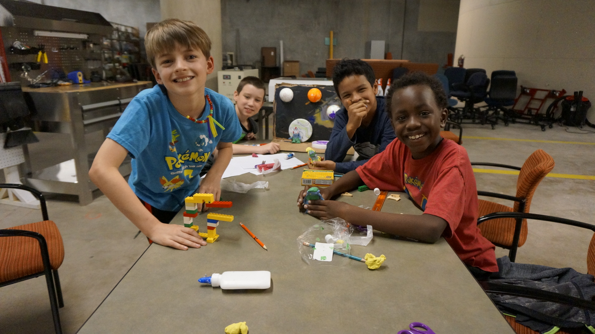 In the morning portion of the day, the campers attend sessions in the museum that allow them to relate art to science and engineering. In the afternoon, they are able to explore different science aspects at the library. During this week, the children are able to learn about art and the rest of the disciplines in STEAM by taking part in numerous activities. The children were currently working on the set design and display of their own original plays.