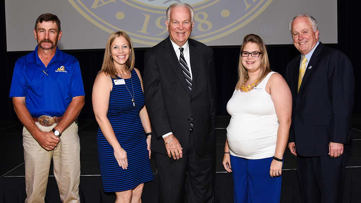 Samsel, an academic advisor in the College of Business, received the Distinguished Staff Award. Scott, a professor of animal science and research scientist in the Department of Agriculture, received the Distinguished Faculty Award. Hart, associate director of admissions, received the Distinguished Administrator Award. Each also received a $2,500 honorarium.