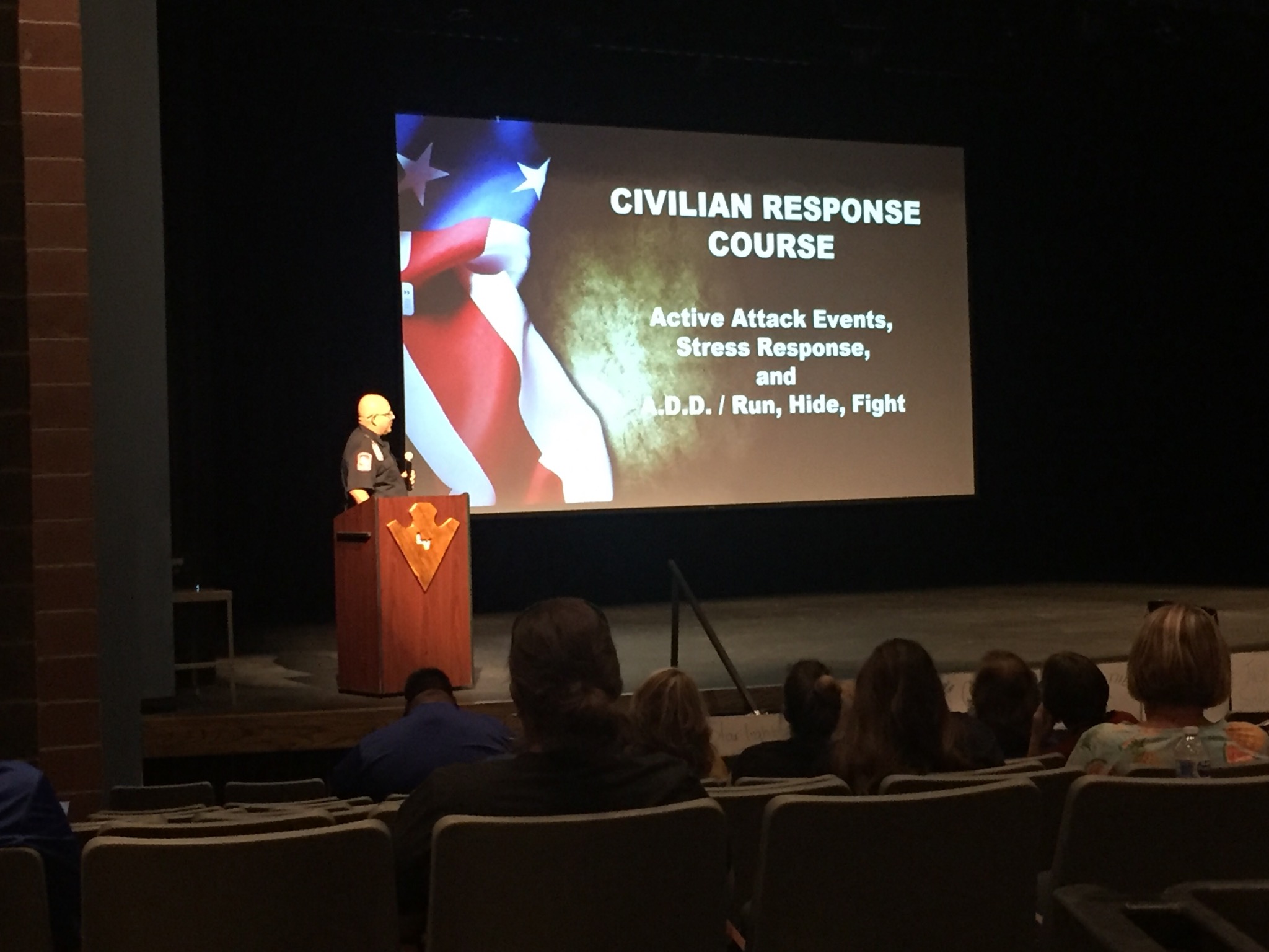 Elizondo told the crowd in the Lake View Auditorium that there have been 242 mass shootings in the United States in the last 15 years and it could happen here.