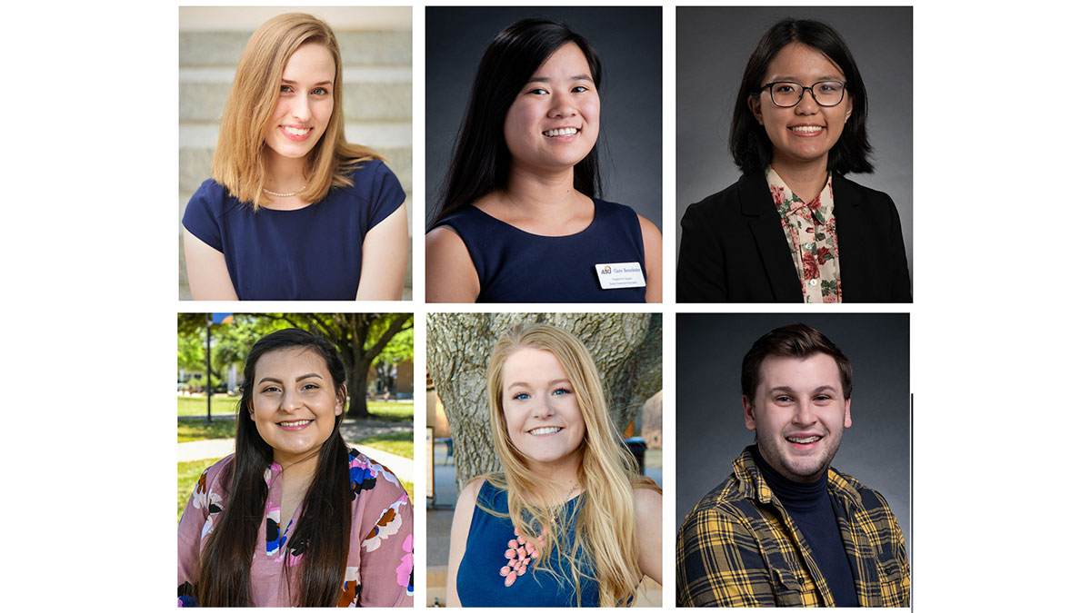In the photo above, the top ASU grads, from top left to bottom right: Evelyn Burch; Claire Benschoter; Angelo Chen; Brianna Gabaldon; Lacey Maurice; and Talon Shoemake.