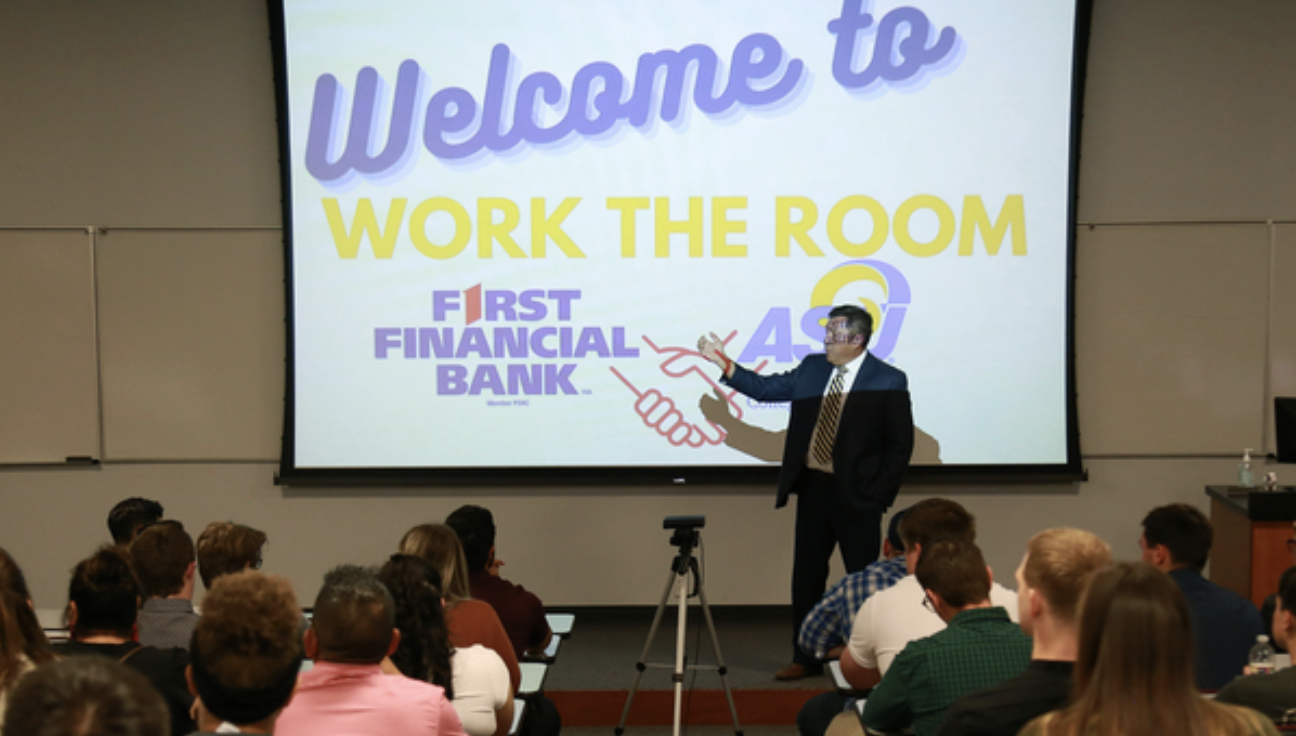 Following the announcement, the students were invited to practice networking with representatives from First Financial Bank.