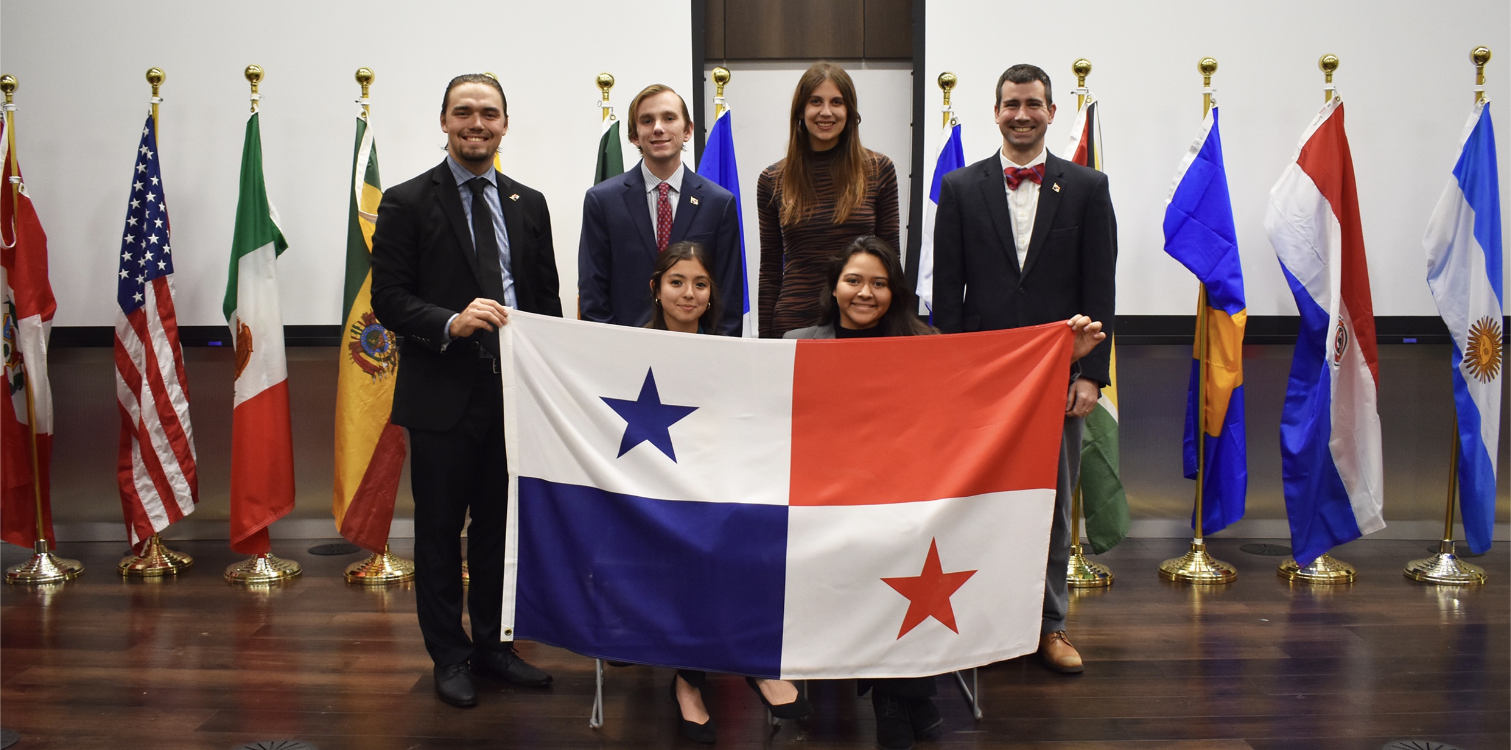 Angelo State's team represented Panama during the ESMOAS Summit of the Americas Competition. Hanne Campbell of Boise, Idaho, earned the Recognized Crisis Response Head of State Address Award for leading the ASU team in developing Panama's response to a crisis and navigating the frenetic negotiations with other countries in the span of one hour. She also had to craft and deliver a brief speech championing Panama's position, as well as deliver the speech in a style authentic to the mannerisms and speech of Panama's real head of state.