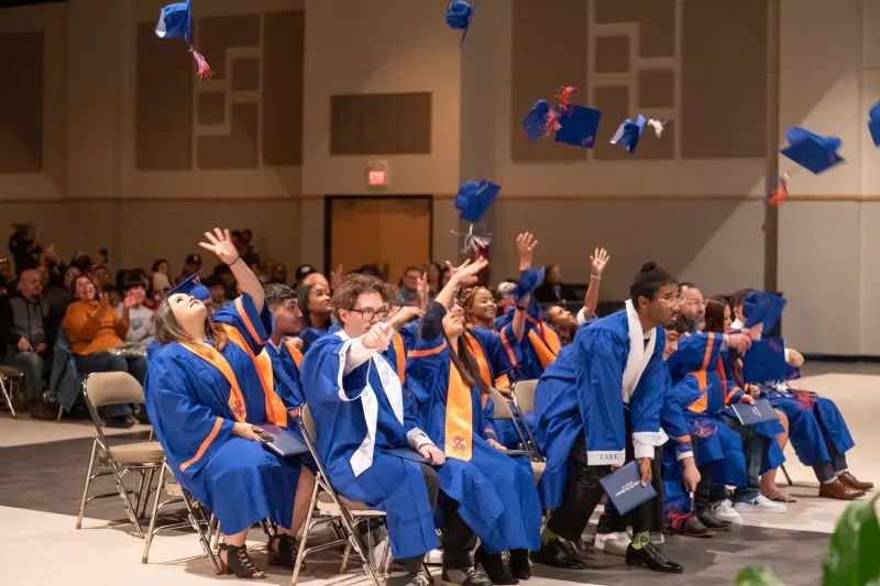 Following each graduate’s walk across the stage to accept their diploma, Graduate Rheana Torres spoke at the closing before Ms. Riojas proudly presented the graduating class and graduates tossed their caps in a final culmination of the event before celebrating with families and friends.