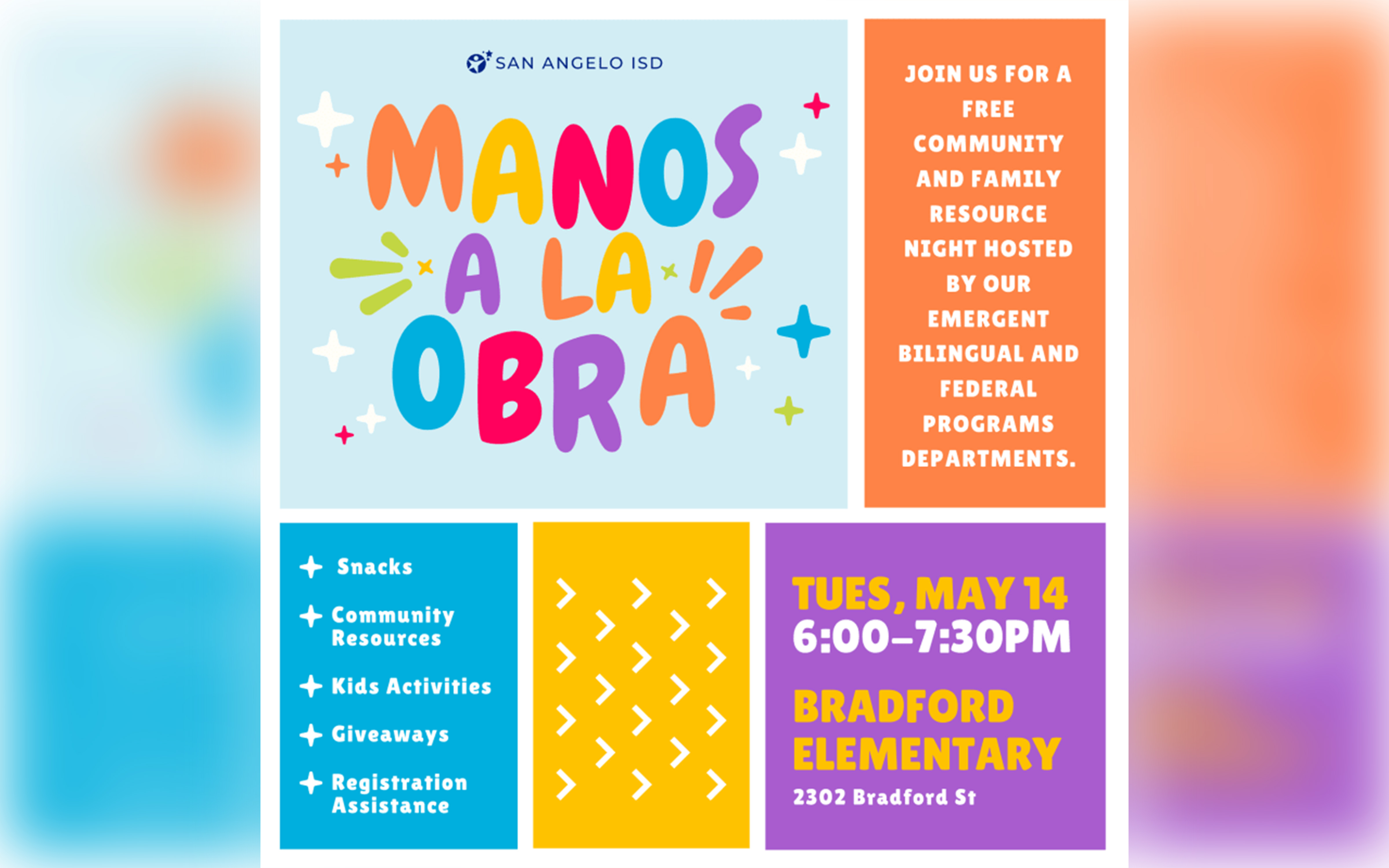 SAN ANGELO, TX — San Angelo ISD is set to host the fourth annual Community Resource Night at Bradford Elementary School, 2302 Bradford Street.