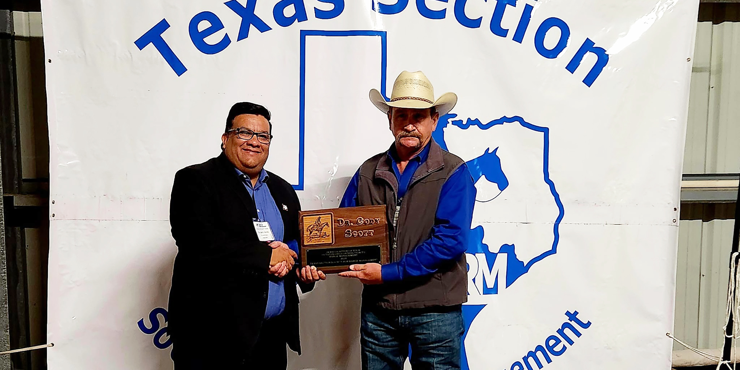 SAN ANGELO, TX - Dr. Cody Scott, an Angelo State University alum and professor in the ASU Department of Agriculture, received the 2024 Outstanding Contribution to Rangeland Management Award at the recent annual meeting of the Texas Section, Society for Range Management (TSSRM) in Victoria.