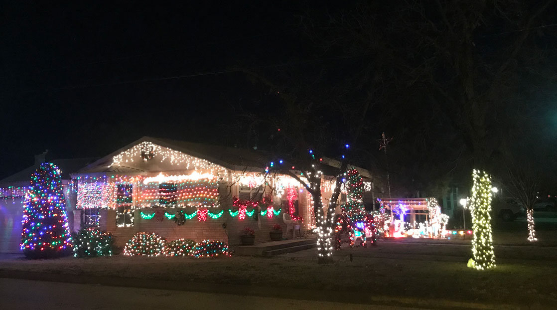 Some of the best spots to drive around is the Santa Rita area, Bentwood, Twin Oaks, and all throughout the North side of town. Even if you don't go through these areas there are still plenty of lights all around town to enjoy this Christmas.