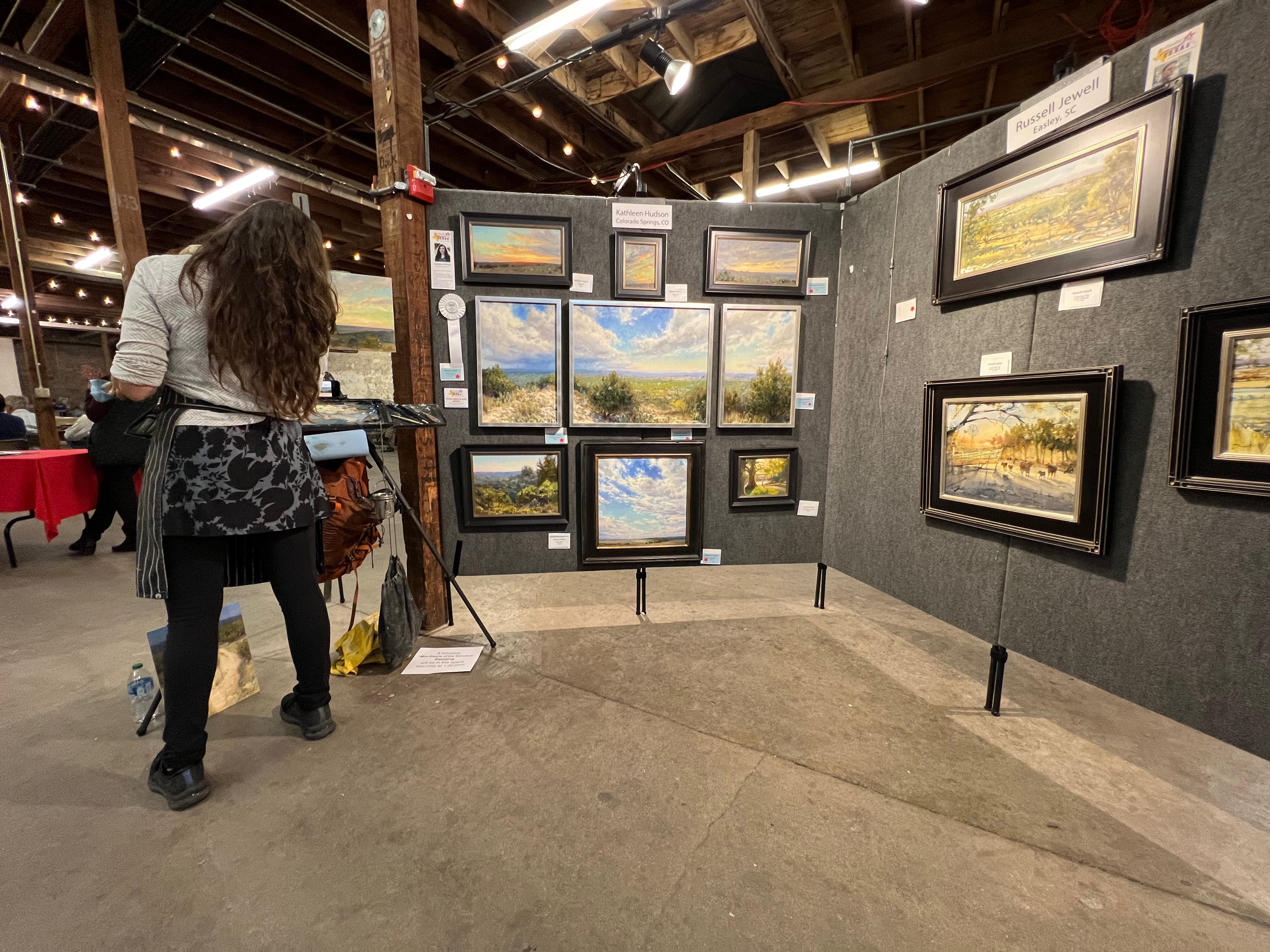 En Plein Air Texas co-chair Treva Boyd said the crowds on Friday and Saturday night at the Stables have been large and, judging from the stack of receipts for the purchases of the paintings created in and around San Angelo by the 34 invited competing artists this year, sales have been brisk. She anticipates the final amount of money the Museum event raised will be in line with past years. The artists keep 60 percent of the money for each of their paintings sold; the San Angelo Museum of Fine Arts collects the remainder that is earmarked for its children’s programs.