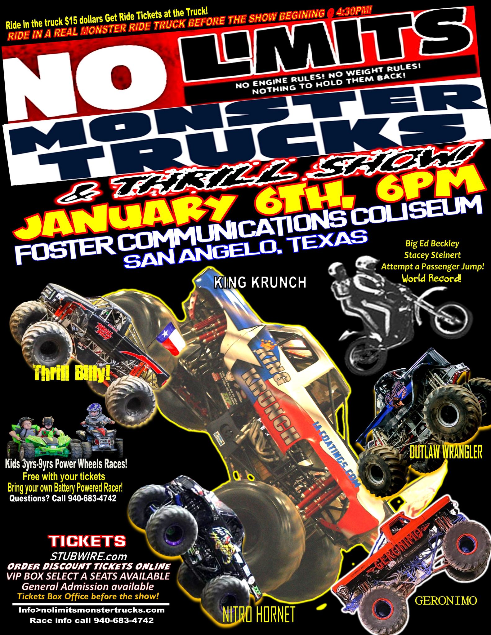 SAN ANGELO, TX - Get ready for an adrenaline-pounding event as the "wildest" monster truck show returns to San Angelo on Saturday, Jan. 6, with a one-time-only event at 6 p.m.