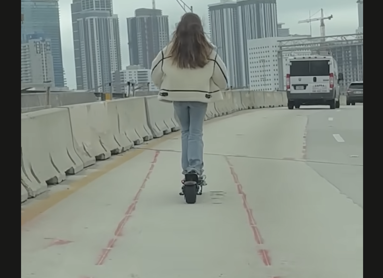 MIAMI, FL - A recent incident in Miami, Florida, raised concerns when a woman was observed riding an electric scooter along a bustling highway. The incident was captured on video by Christian Dean, who expressed the importance of recording such behavior in case of any potential issues.